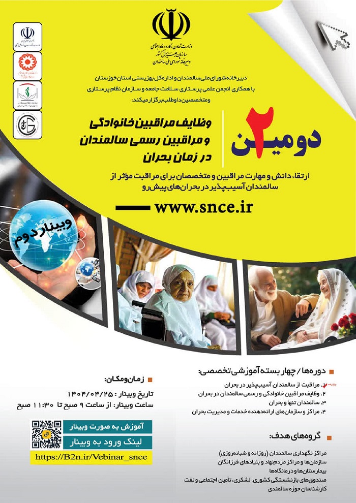 وبینار آموزشی دوم : وظایف مراقبین خانوادگی و مراقبت رسمی سالمندان در زمان بحران