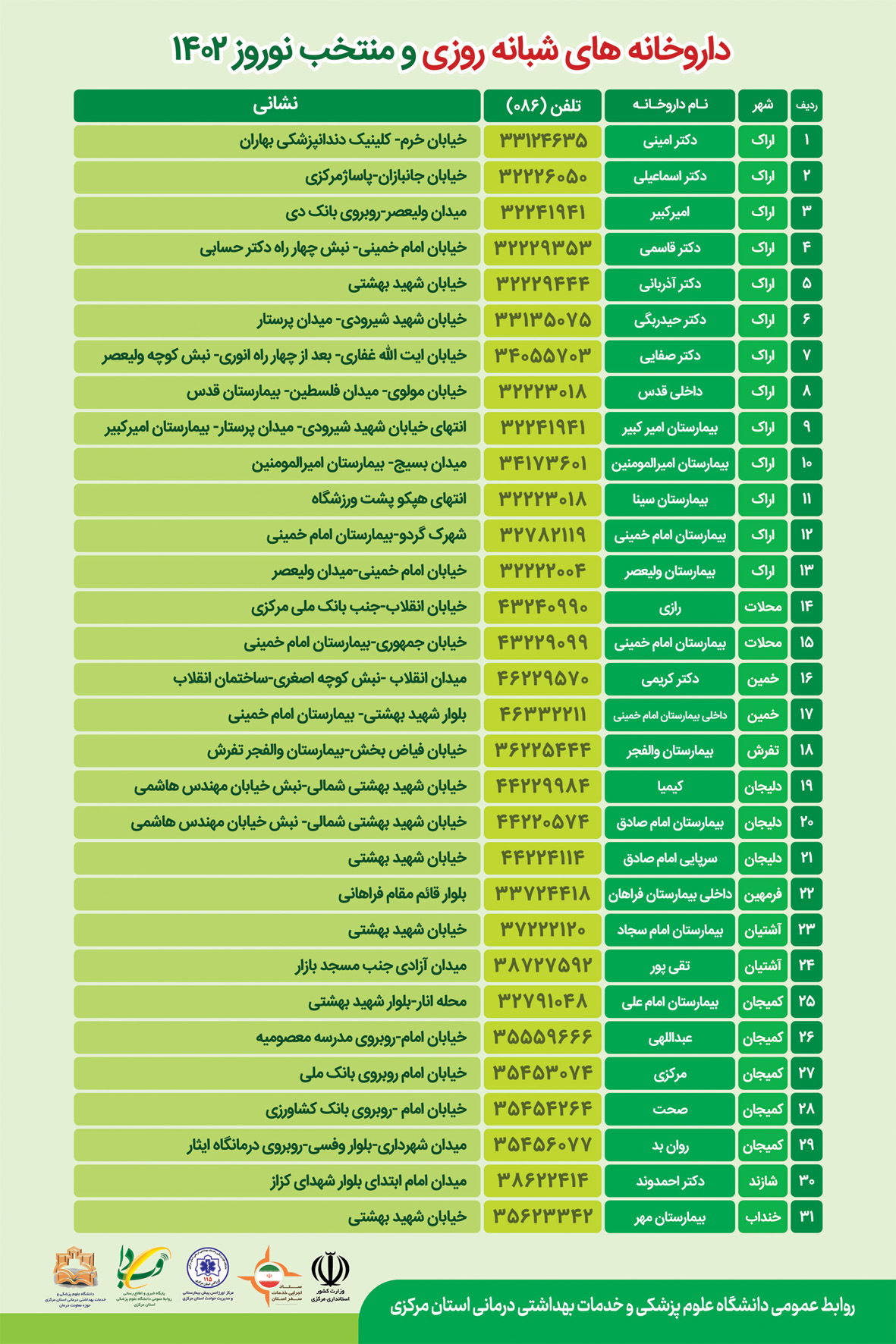 داروخانه های شبانه روزی و منتخب نوروز ۱۴۰۲ تعداد بازدید:۵۵۲ ارسال به دیگران نام شما ایمیل شما ایمیل دریافتکننده ارسال انصراف